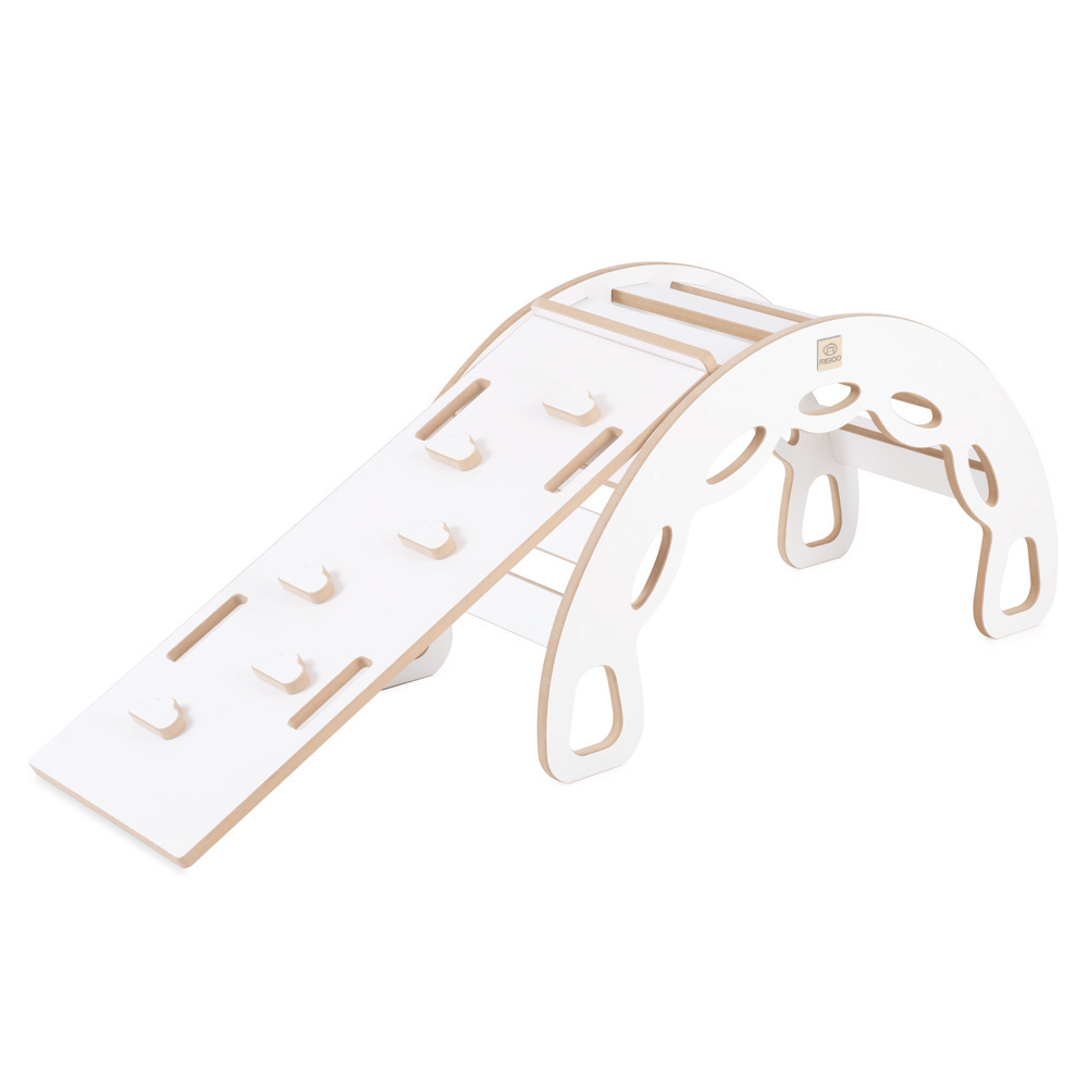 -Climbing wall and slide: A two-sided piece that develops a child's motor skills.One side is used for climbing, the other acts as a slide - the perfect combination of fun and physical activity.