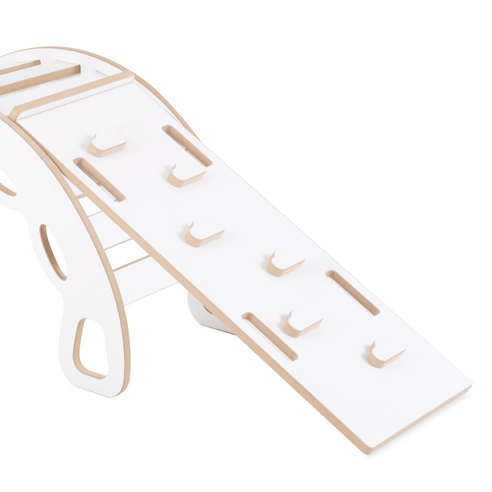 -Climbing wall and slide: A two-sided piece that develops a child's motor skills.One side is used for climbing, the other acts as a slide - the perfect combination of fun and physical activity.