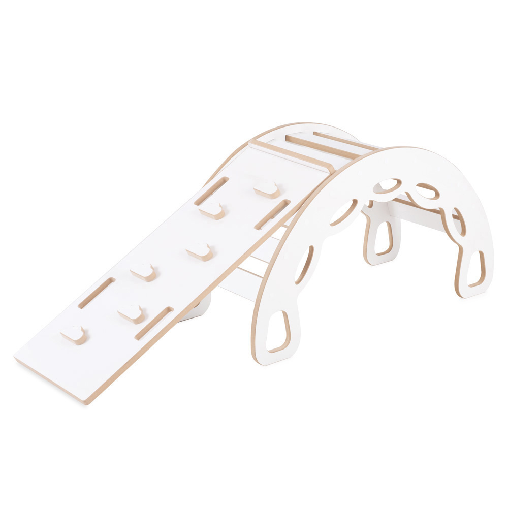 PLUSH NEST Small Rocker 4-in-1 rocker + climbing wall/slide + cushion Light Beige, white Wooden Play