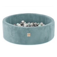 PLUSH NEST Bällebad, blau, rund, Premium-Cord, 90x30, 200 Bälle: pearl, pearl mint, silber