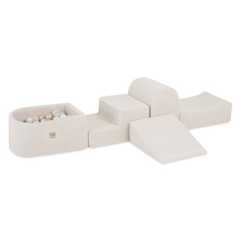 PLUSH NEST Spielplatz 3 Elemente + Trockenbecken 90x30 (+200 Kugeln: Perle, Gold, Gelb), beige, Premium-Cord