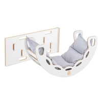 PLUSH NEST Bujak Small Rocker 4 w 1 + ścianka wspinaczkowa/zjeżdżalnia + poduszka Jasny Szary, biały Wooden Play