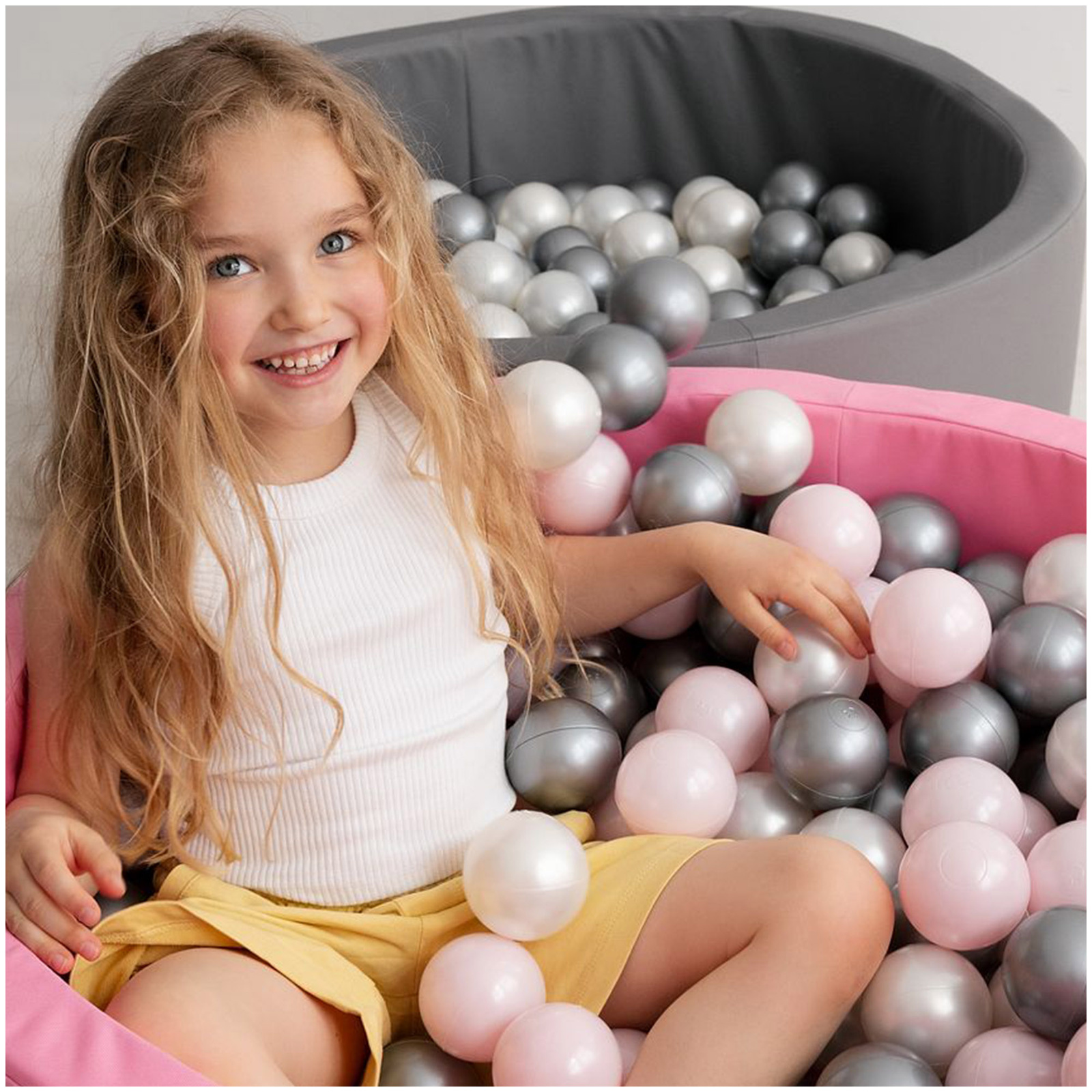 Piłki do suchego basenu, 6 cm, zestaw 200 szt: perłowe, srebrne, perłowe jasno różowe