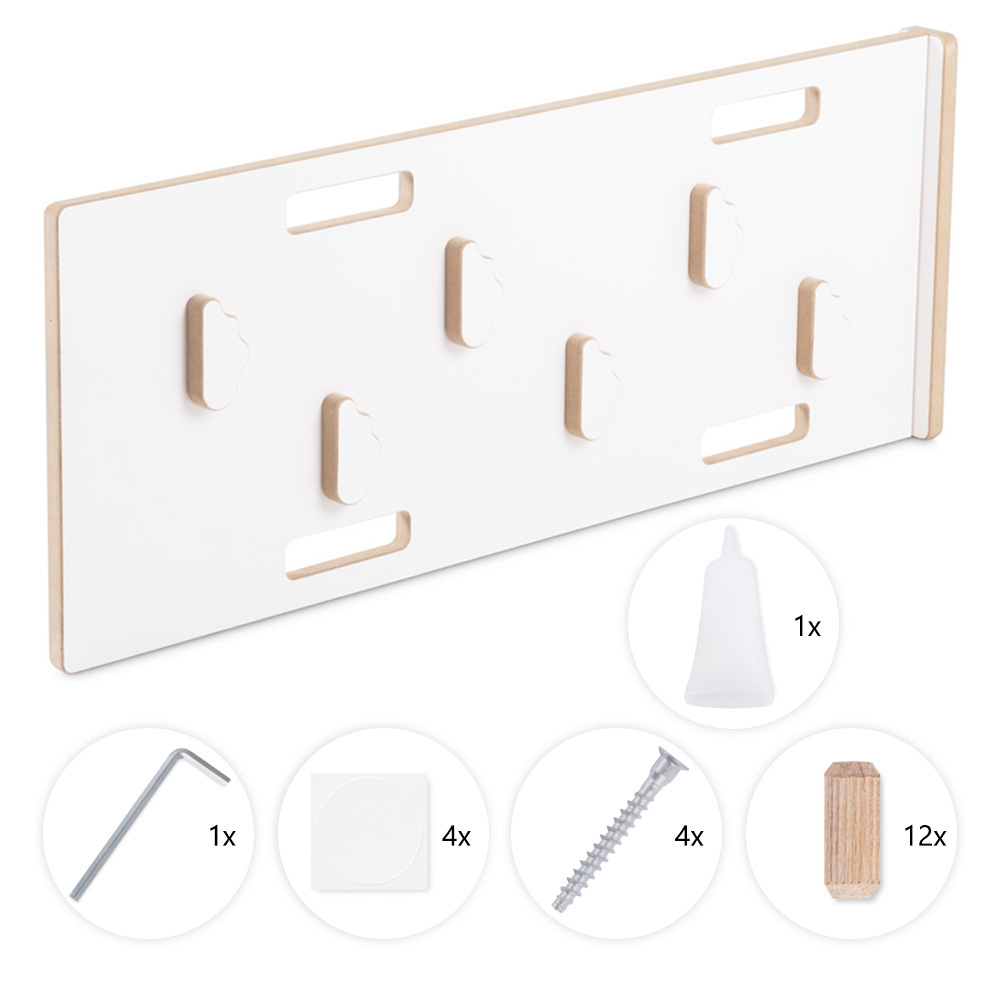 Zestaw mebli i akcesoriów dla dzieci PLUSH NEST 4w1 – bujak, ścianka wspinaczkowa / zjeżdżalnia oraz poduszka.