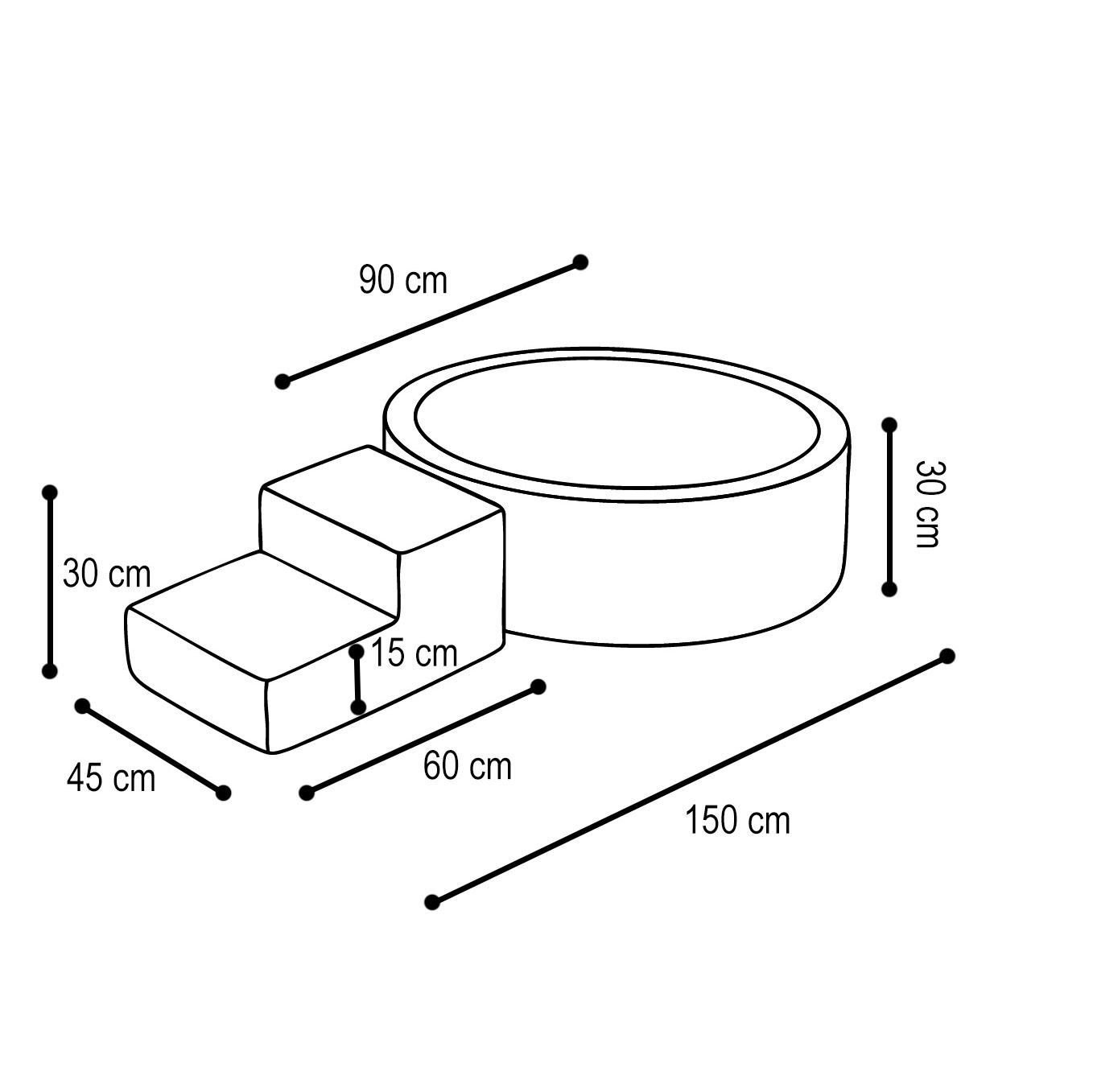 PLUSH NEST Plac zabaw Suchy basen 90x30 + schodek (+200 piłek: perłowy, srebrny, jasnoniebieski), szary, sztruks premium