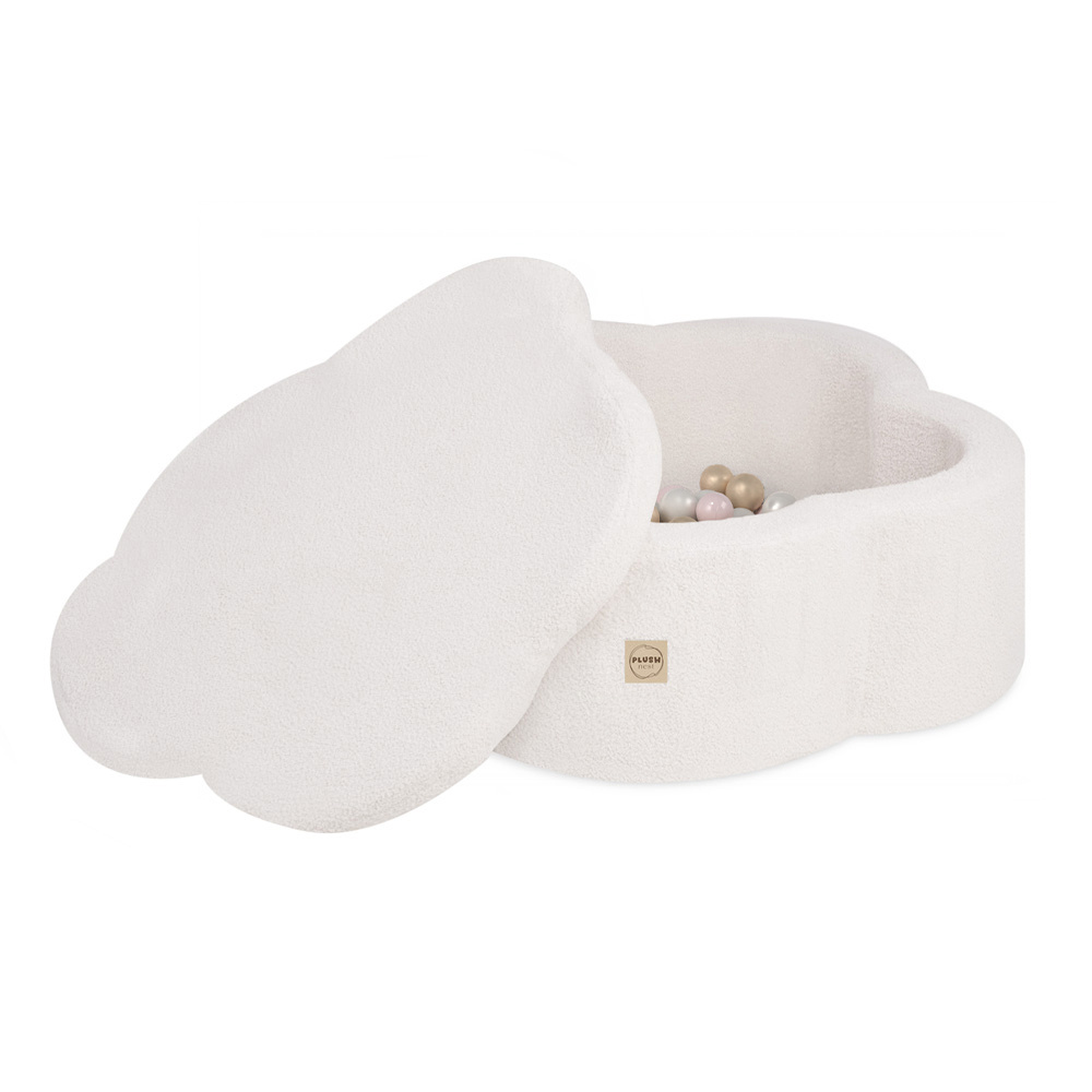 PLUSH NEST Suchy basen kwiatek z matą, 95x30 cm, kremowy baranek (+ 200 piłek złote, perłowe, jasnoróżowe perłowe), Floral Fun Zone